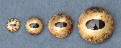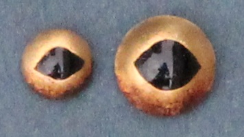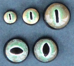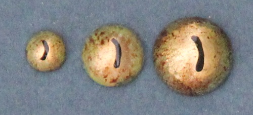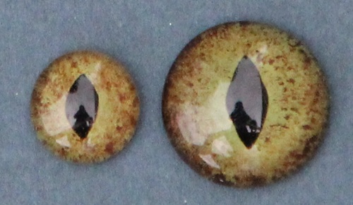 From the estate of the Anton-Greiner-Vetter-Glasaugen-Manufaktur Lauscha/Germany. Crocodile eyes CC eyes with slit pupil, can be used for many other reptile species.