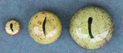 From the estate of the Anton-Greiner-Vetter-Glasaugen-Manufaktur Lauscha/Germany. CC eyes ochre-colored with brown pattern in the lower half of the eyes with slit pupil. Labeled \"Pyton\" by the manufacturer.