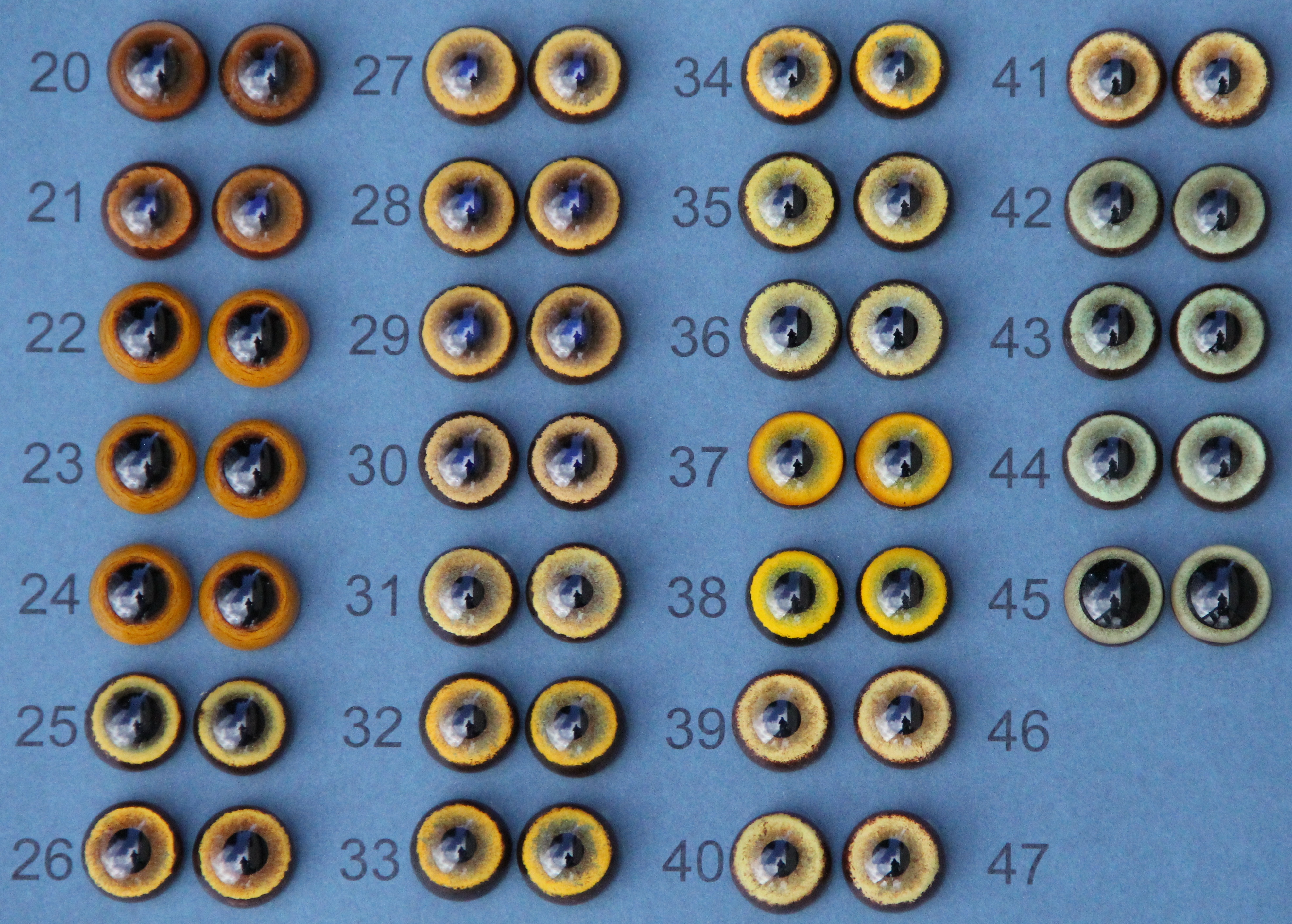 CC mammal eyes round pupil 21 mm No. 45 (only one pair available!)