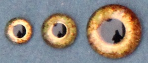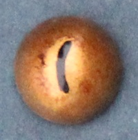 From the estate of the Anton-Greiner-Vetter-Glasaugen-Manufaktur Lauscha/Germany. Crocodile eyes CC eyes with slit pupil, can be used for many other reptile species.