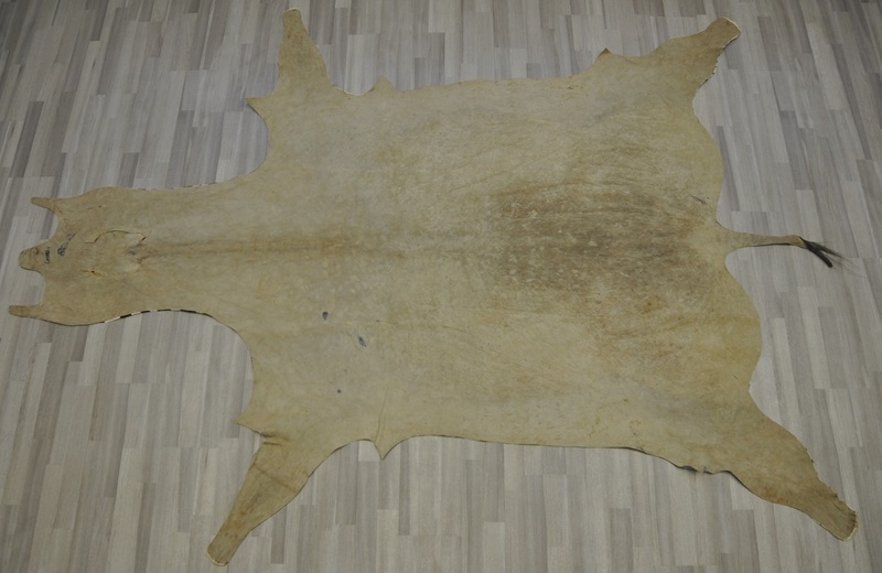 Länge Schnauze-Schwanzansatz: 248 cm, Breite am Bauch 139 cm. Die leicht eingerollte Schwanzspitze könnte gegen Aufpreis geweicht und gespannt werden.